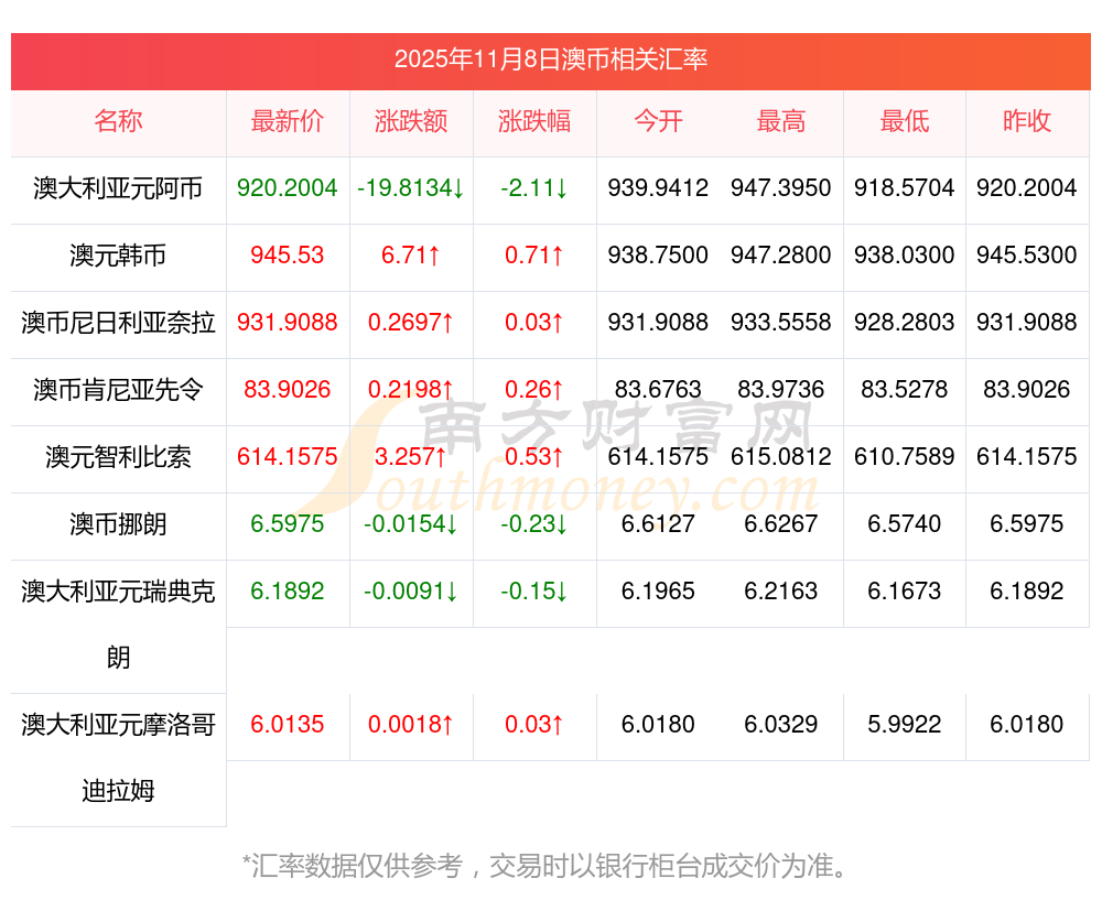 今天澳幣購匯行情:158澳幣對剛幣匯率多少?2025-11-8