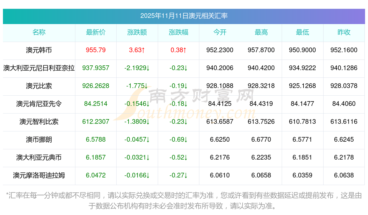 根據(jù)2025年11月11日匯率計(jì)算,澳元兌換比索匯率最新價(jià)926.262800,今開價(jià)928.1088,昨收價(jià)928.0378,最高價(jià)928.3218,最低價(jià)925.1268。