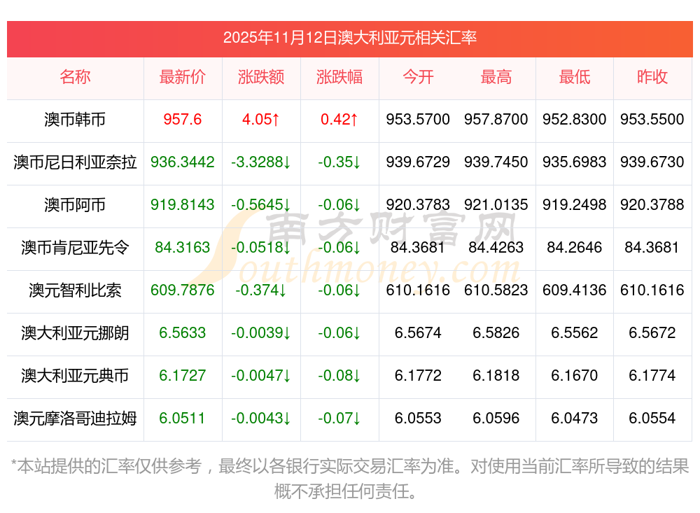 2025年11月12日澳大利亞元相關(guān)匯率查詢