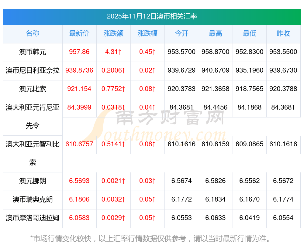 2025年11月12日澳幣相關(guān)匯率查詢