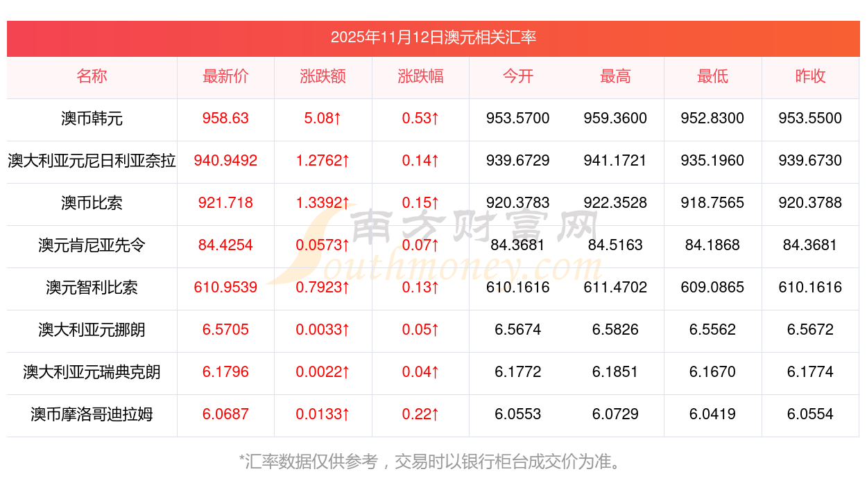2025年11月12日澳元相關(guān)匯率查詢
