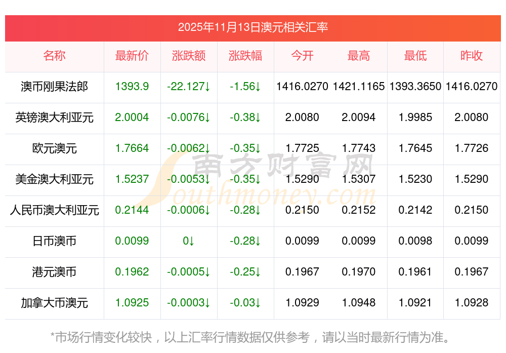 2025年11月13日澳元兌換秘魯新索爾最新匯率:2.211100,今開:2.2033,昨收:2.2033,最高:2.2120,最低:2.2008。