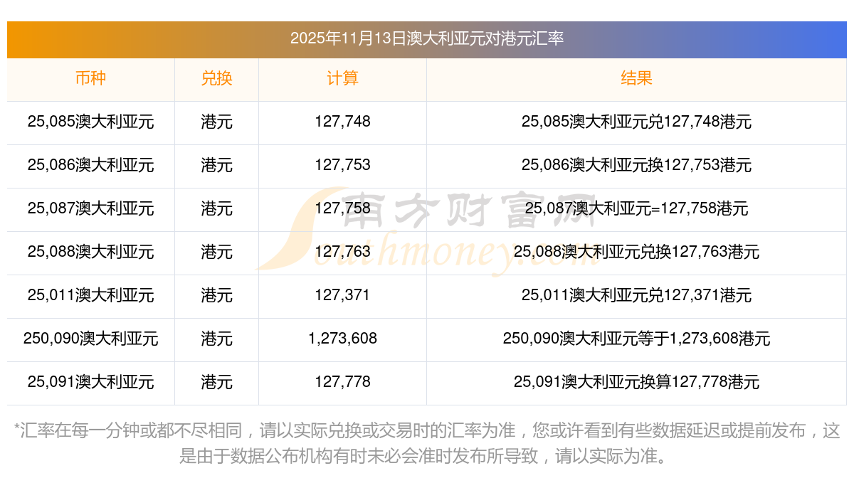 21澳大利亞元等于多少港元的?(2025年11月13日)