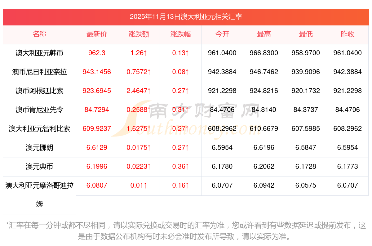 2025年11月13日澳大利亞元相關(guān)匯率查詢(xún)