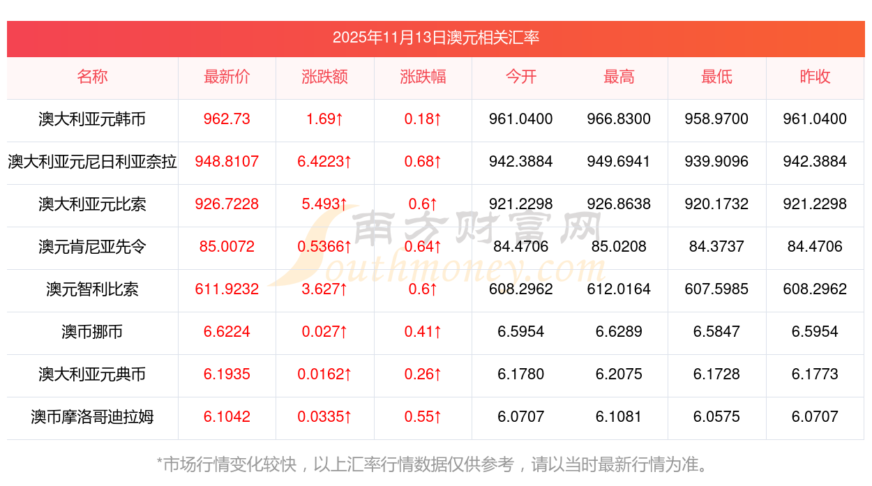 2025年11月13日澳元兌換瑞士法郎最新匯率:0.522900,今開:0.5218,昨收:0.5218,最高:0.5250,最低:0.5212。