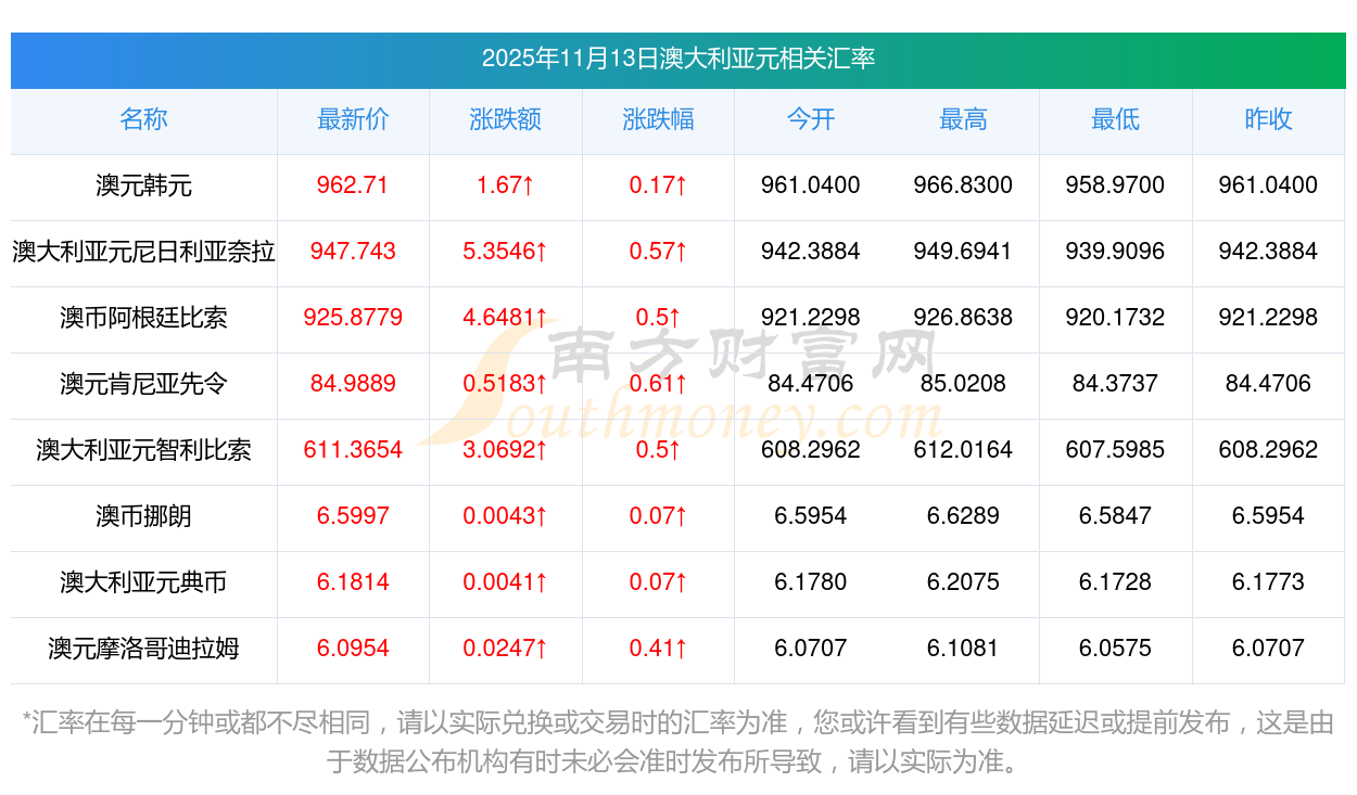 2025年11月13日澳大利亞元相關(guān)匯率查詢