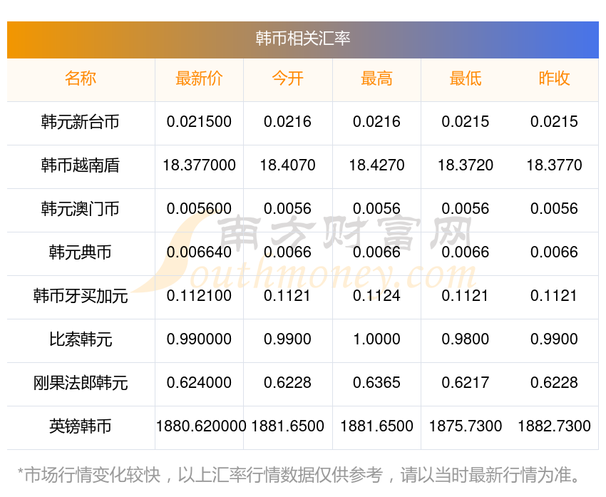 2025年11月3日韓幣相關(guān)匯率查詢
