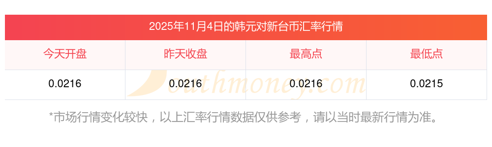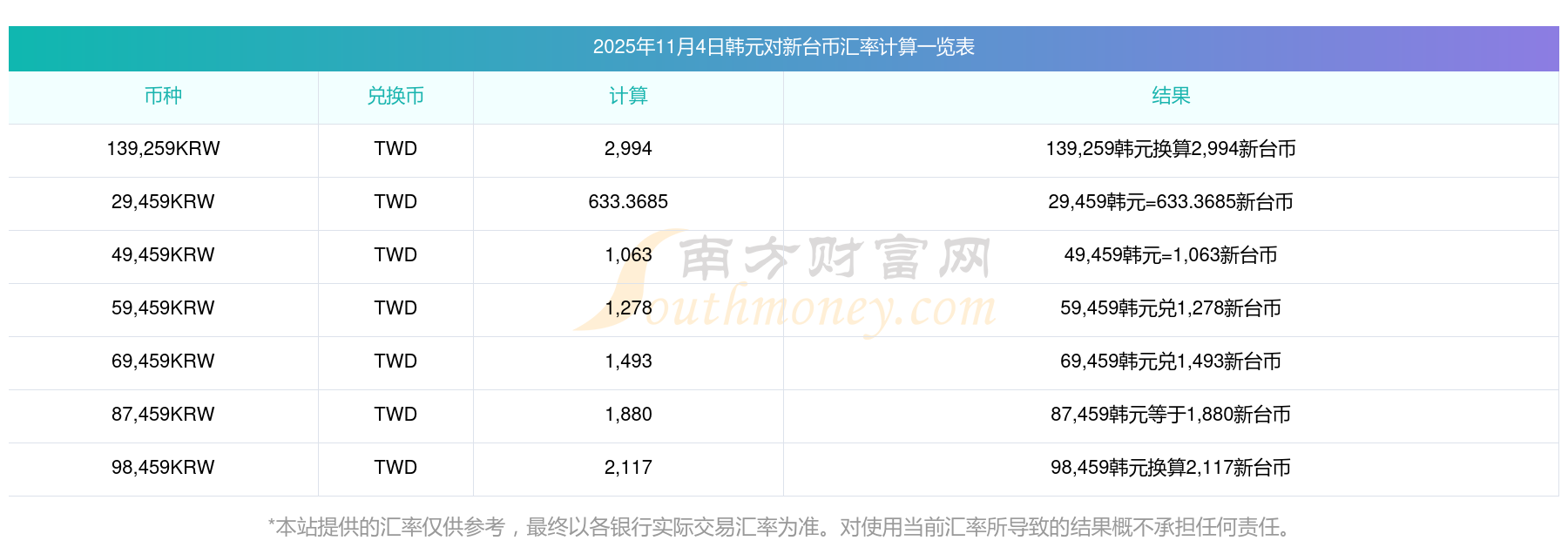 韓元買(mǎi)入價(jià)多少 今天100韓元兌新臺(tái)幣有多少?(2025/11/4)