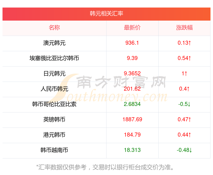 根據(jù)2025年11月4日匯率,韓元兌換新幣匯率最新價(jià)0.000907,今開價(jià)0.0009,昨收價(jià)0.0009,最高價(jià)0.0009,最低價(jià)0.0009。