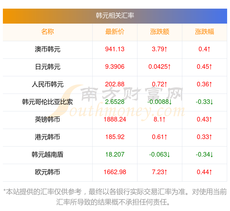 南方財富網為您提供韓元對越南盾匯率最新價格詳情。