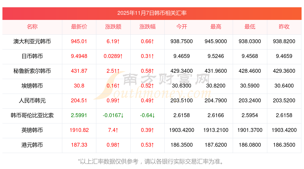 2025年11月7日韓幣相關(guān)匯率查詢