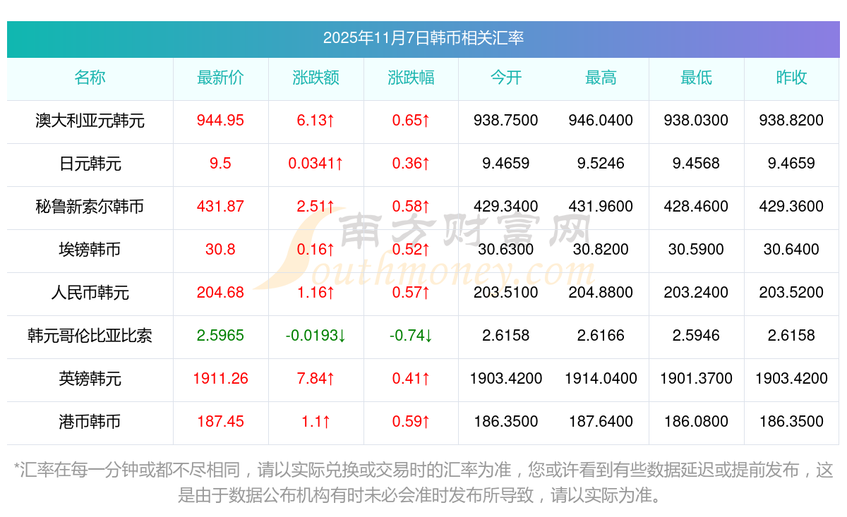 根據(jù)2025年11月7日匯率計(jì)算,KRW兌換MMK匯率最新價1.440000:今日開價1.4494,昨日收價1.4494,最高價1.4514,最低價1.4392。
