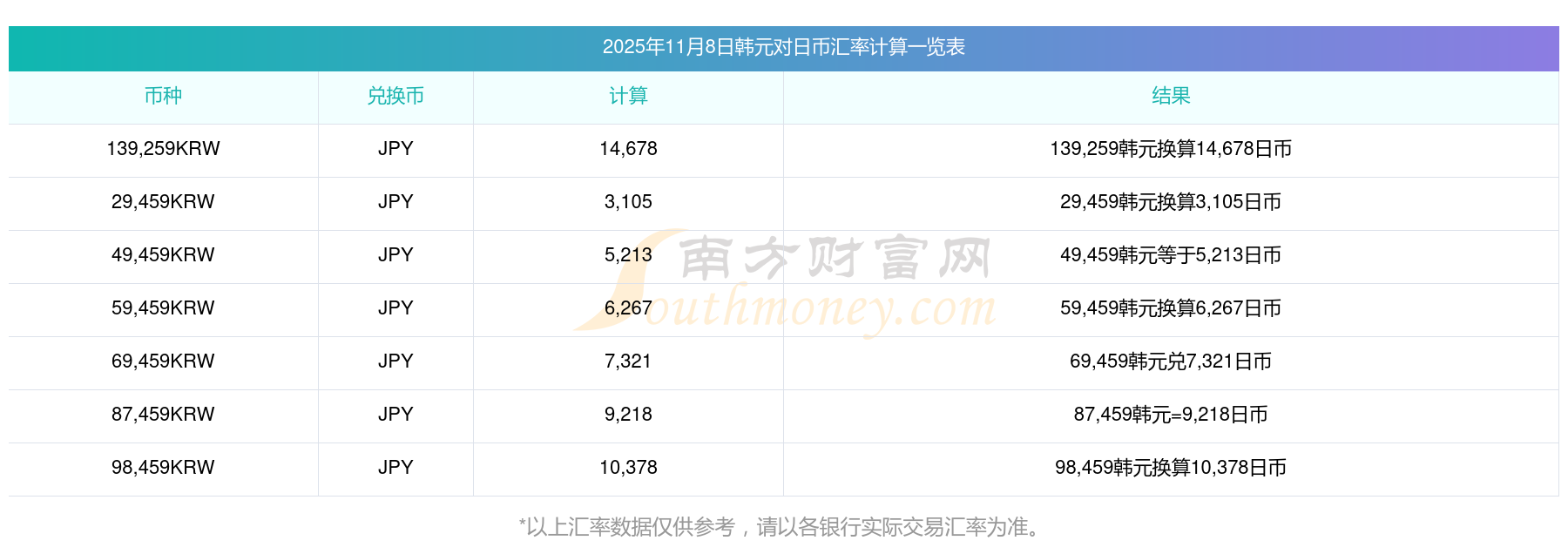 今日外匯價_韓元對日幣匯率實時匯率查詢11-08