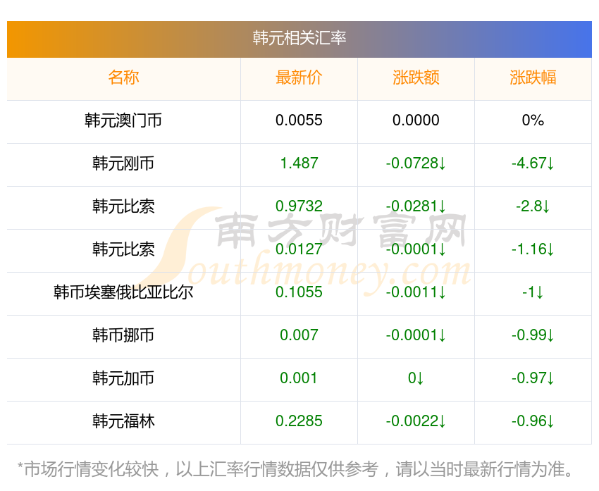 南方財富網為您提供韓元對日幣匯率最新價格詳情。