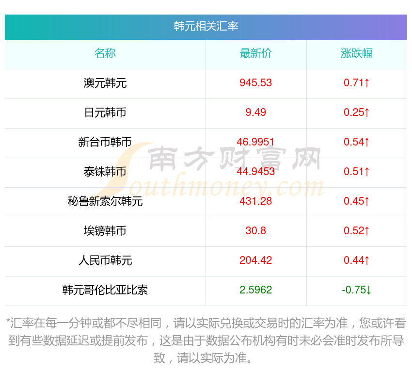 2025年11月9日韓元相關(guān)匯率查詢