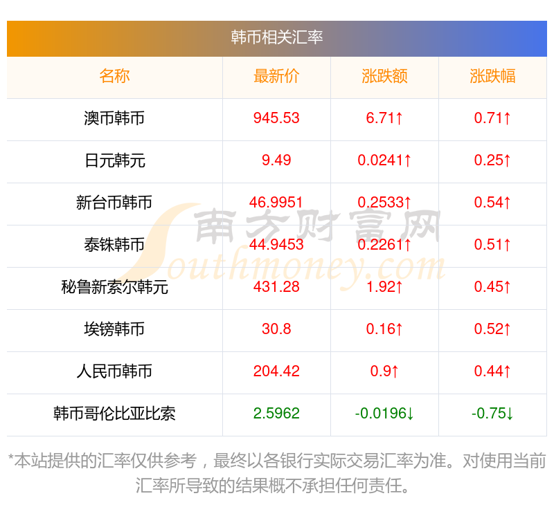 根據(jù)2025年11月9日匯率計算,KRW兌換PEN匯率最新價0.002319:今日開價0.0023,昨日收價0.0023,最高價0.0023,最低價0.0023。