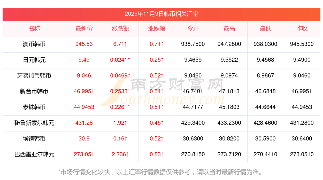 2025年11月9日韓幣相關(guān)匯率查詢