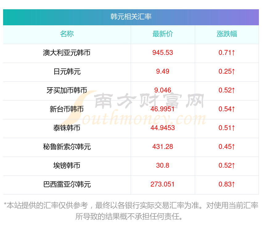 南方財富網(wǎng)為您提供韓元對澳門元匯率最新價格詳情。