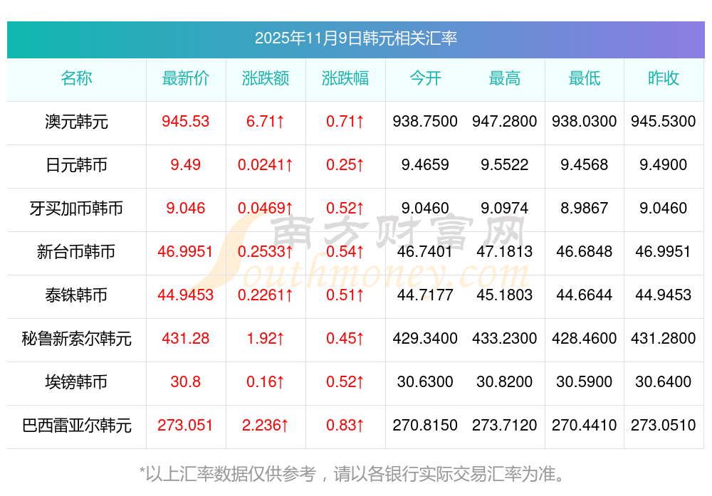 根據(jù)2025年11月9日匯率,韓元兌換瑞郎匯率最新價(jià)0.000553,今開(kāi)價(jià)0.0006,昨收價(jià)0.0006,最高價(jià)0.0006,最低價(jià)0.0005。