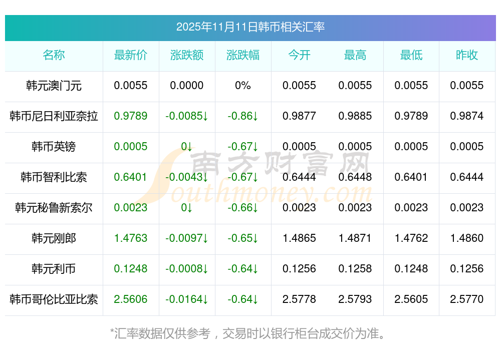 今天韓幣購(gòu)匯行情:340韓幣對(duì)林吉特匯率多少?2025/11/11