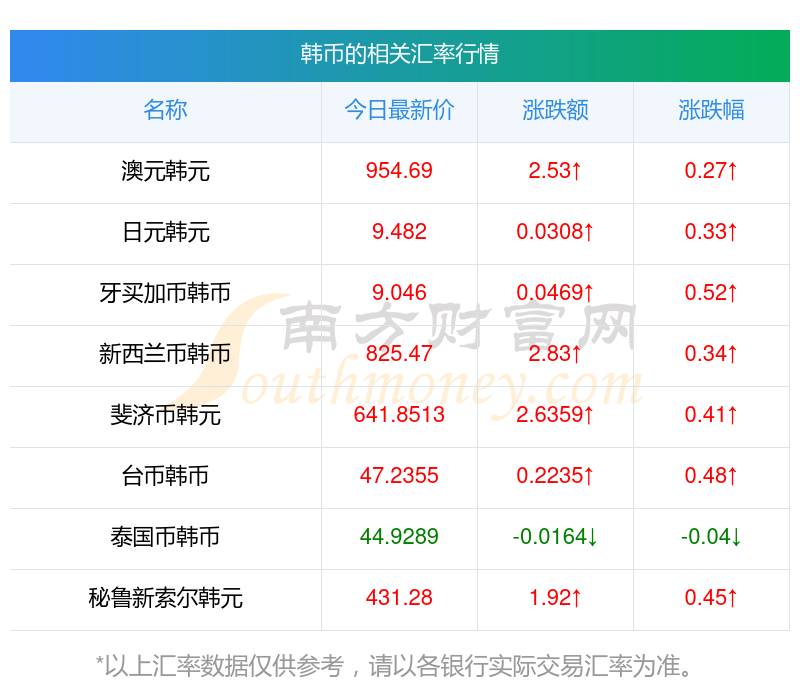 南方財富網(wǎng)為您提供韓幣對美金匯率最新價格詳情。