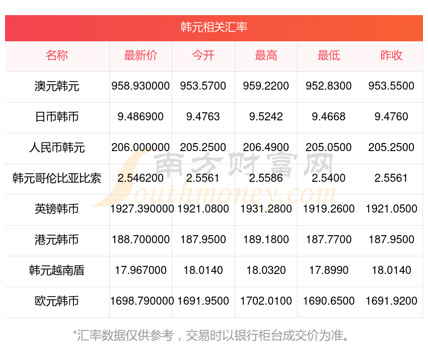 2025年11月12日韓元相關(guān)匯率查詢(xún)