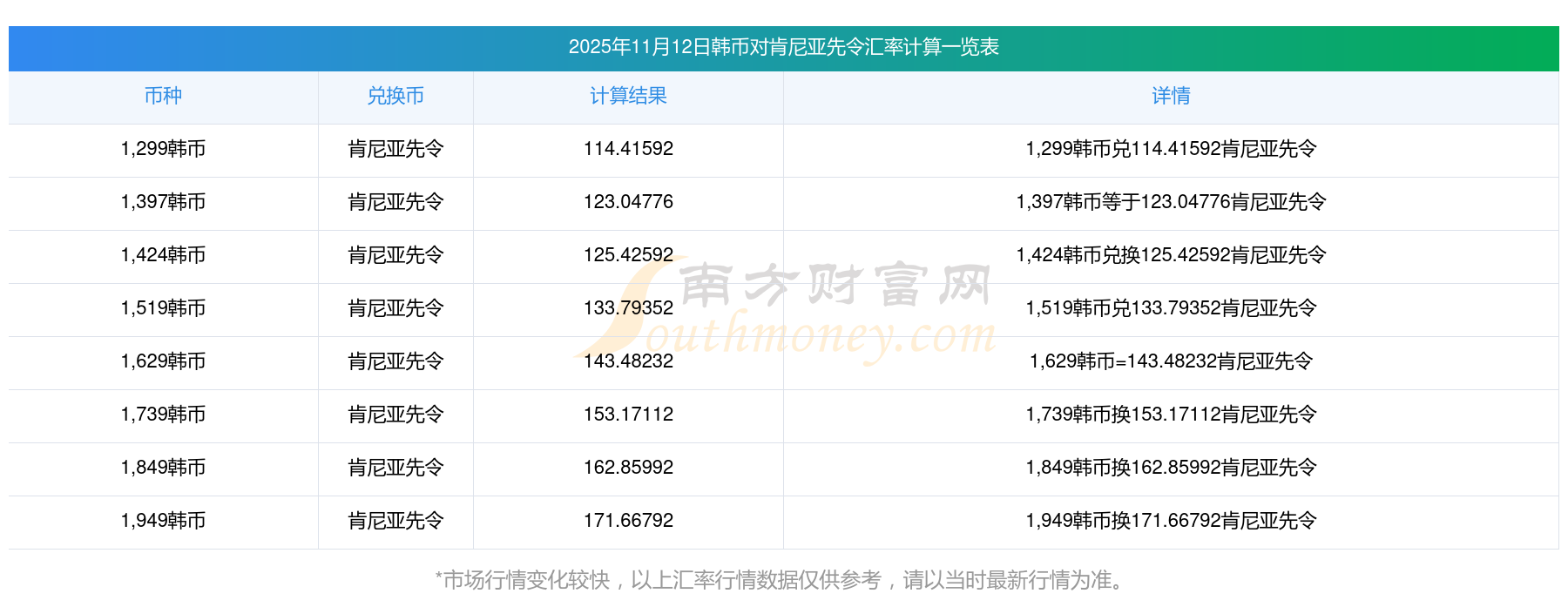 韓幣對(duì)肯尼亞先令匯率計(jì)算器(2025年11月12日)