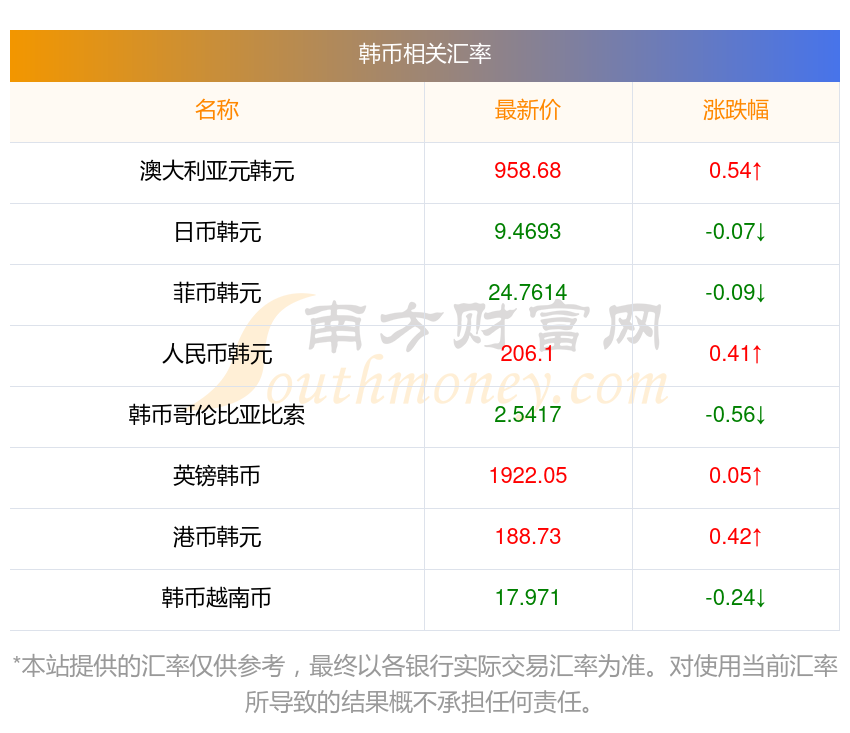 南方財(cái)富網(wǎng)為您提供韓幣對智利比索匯率最新價(jià)格詳情。