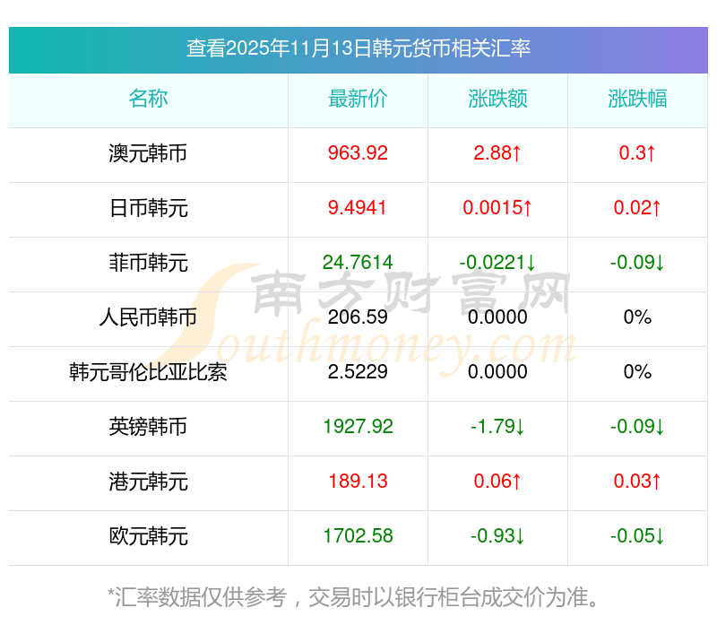 根據(jù)2025年11月13日匯率計(jì)算,KRW兌換USD匯率最新價(jià)0.000681:
