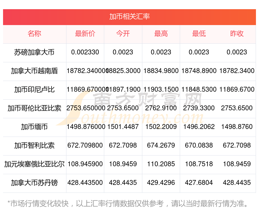 南方財(cái)富網(wǎng)為您提供加幣對(duì)蘭幣匯率最新價(jià)格詳情。