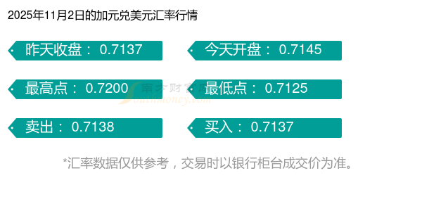 現(xiàn)在1加元與美元的匯率是多少?2025年11月2日