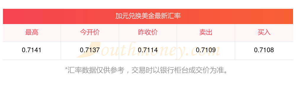 現(xiàn)在1加元與美元的匯率是多少?2025年11月4日