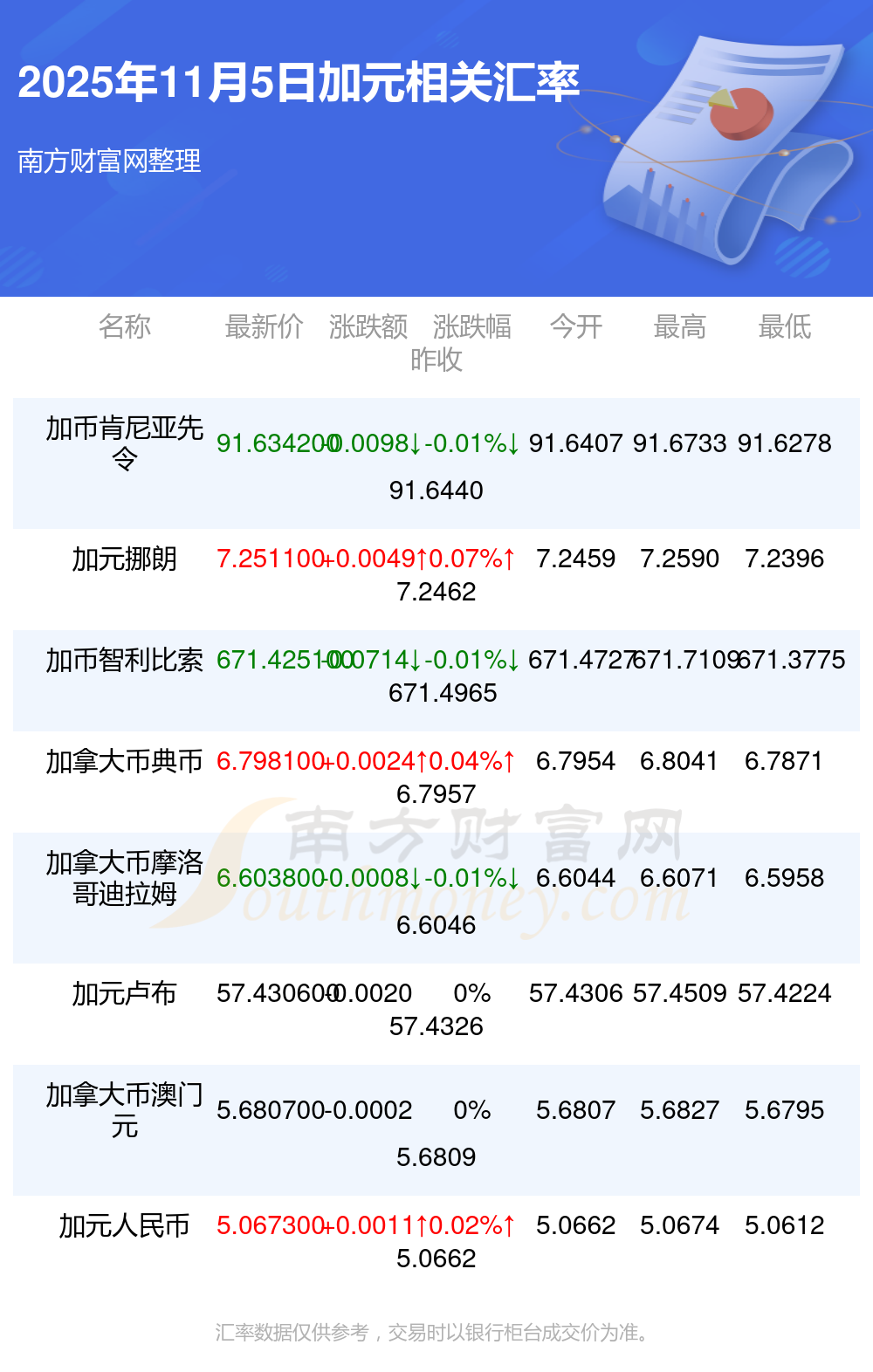 2025年11月5日加元相關(guān)匯率查詢
