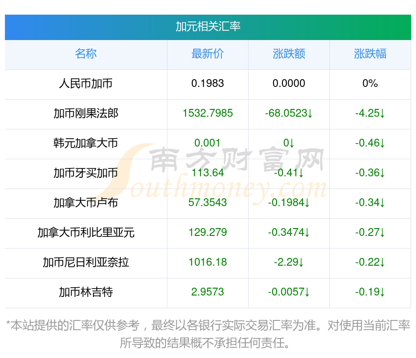 2025年11月7日加元相關(guān)匯率查詢