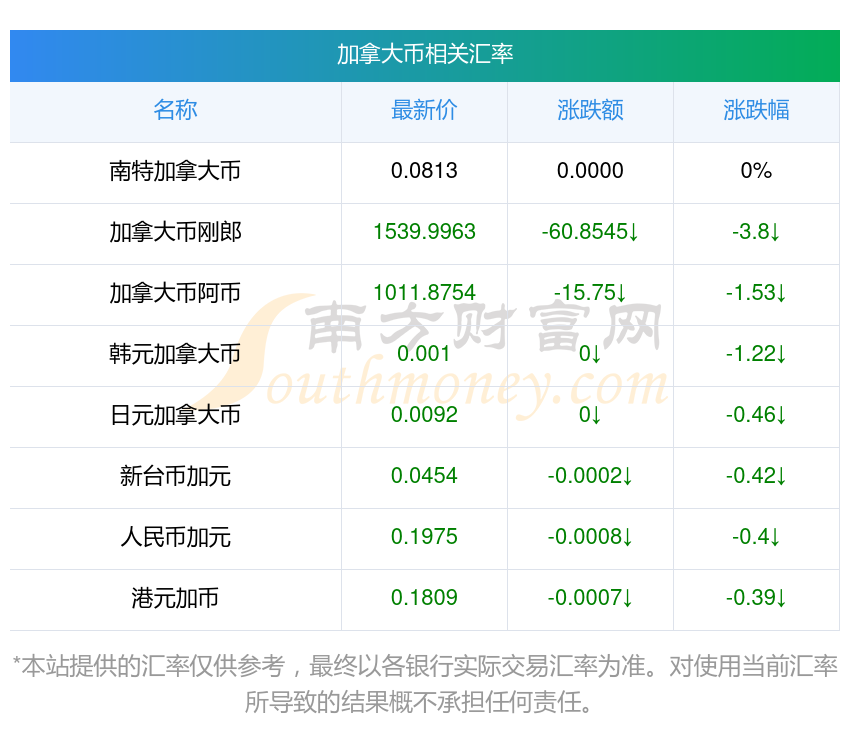 南方財富網(wǎng)為您提供加拿大幣對剛郎匯率最新價格詳情。