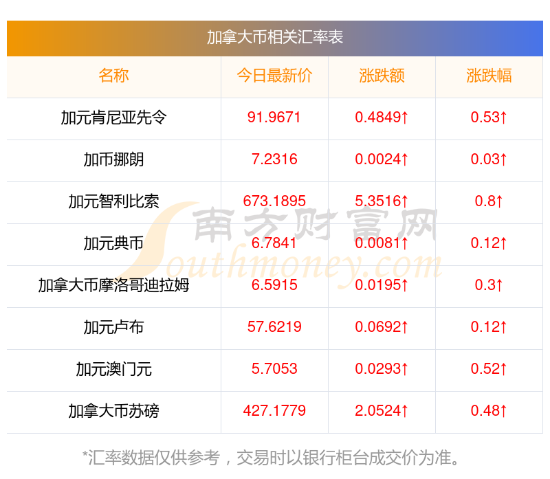 2025年11月8日加拿大幣相關(guān)匯率查詢