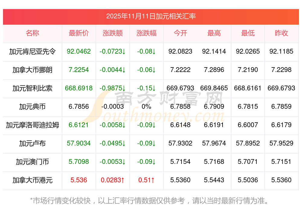 2025年11月11日加元相關(guān)匯率查詢(xún)