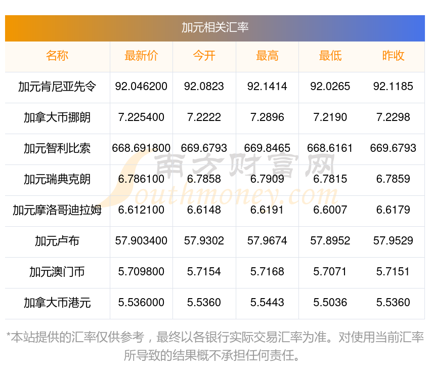 南方財(cái)富網(wǎng)為您提供加元對(duì)瑞典克朗匯率最新價(jià)格詳情。
