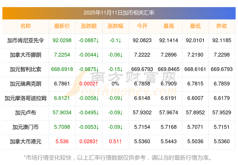 2025年11月11日加幣相關(guān)匯率查詢