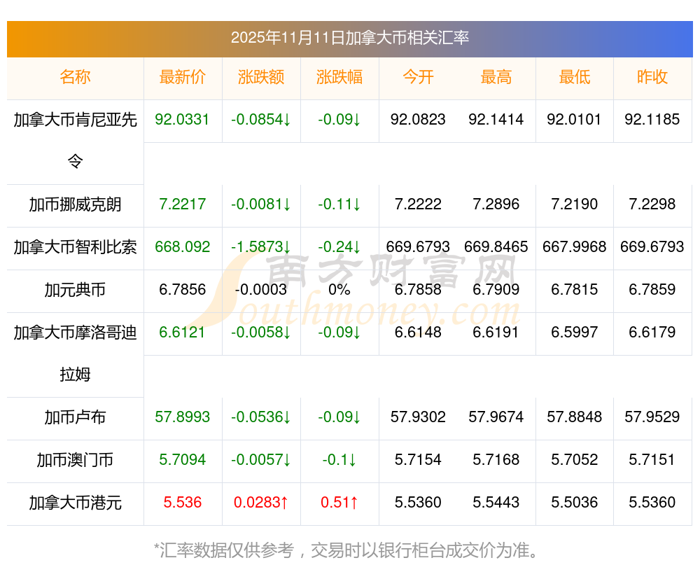 2025年11月11日加拿大幣相關(guān)匯率查詢