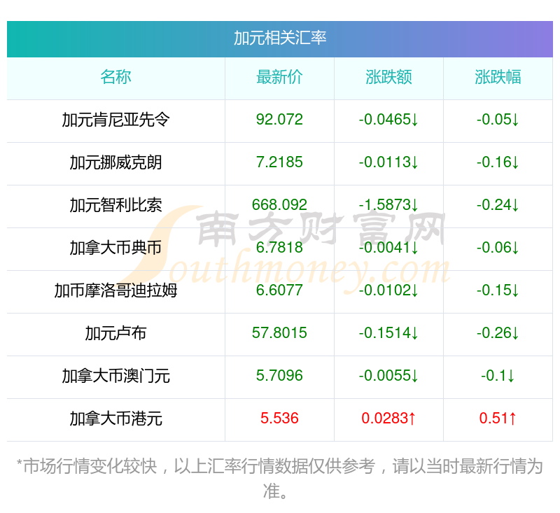 根據(jù)2025年11月11日匯率,加元兌換新元匯率最新0.928200,今開0.9293,昨收0.9293,最高0.9296,最低0.9281。