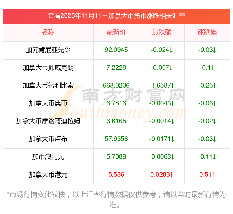 2025年11月11日加拿大幣相關(guān)匯率查詢