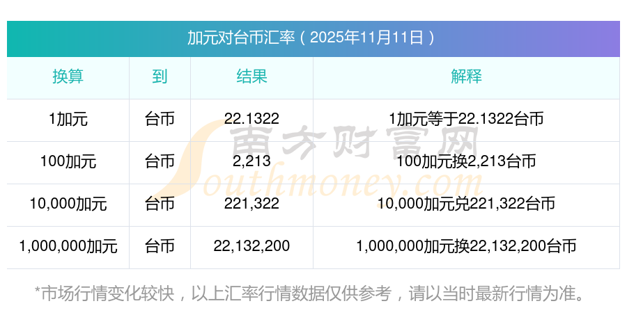 南方財富網為您提供加元對臺幣匯率最新價格詳情。