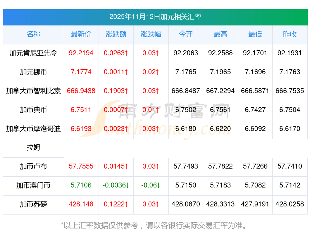 2025年11月12日加元相關(guān)匯率查詢