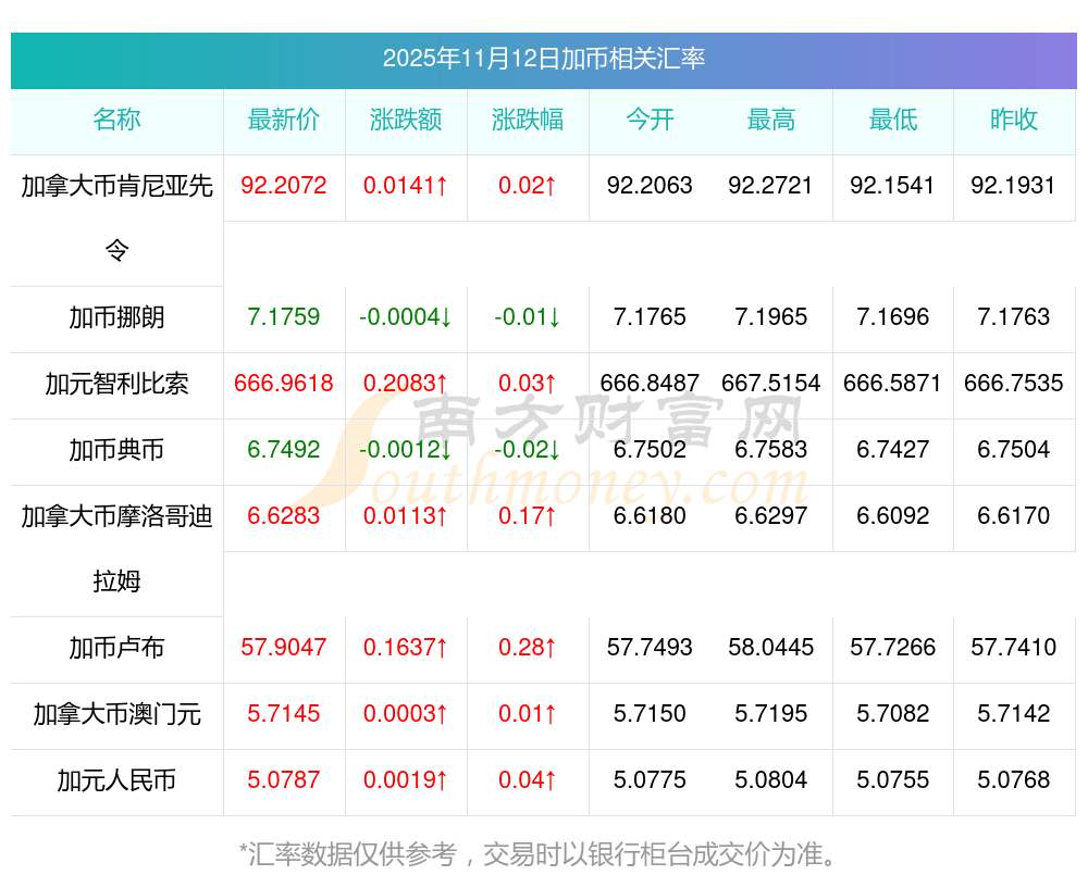 根據2025年11月12日匯率計算,CAD兌換PHP匯率最新價42.260000:今開價42.0500,昨收價42.0500,最高價42.2700,最低價42.0300。