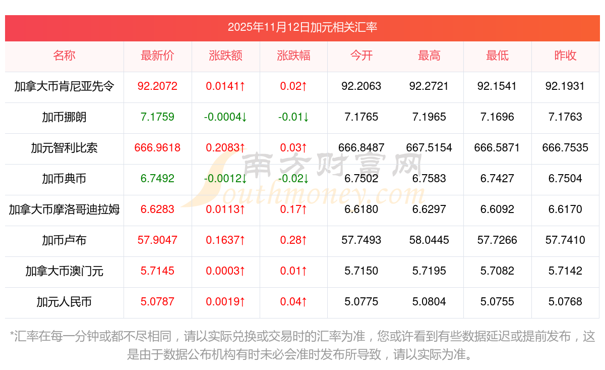 2025年11月12日加元兌換匈幣最新匯率:237.180000,今開:237.0100,昨收:237.0300,最高:237.4200,最低:236.8000。