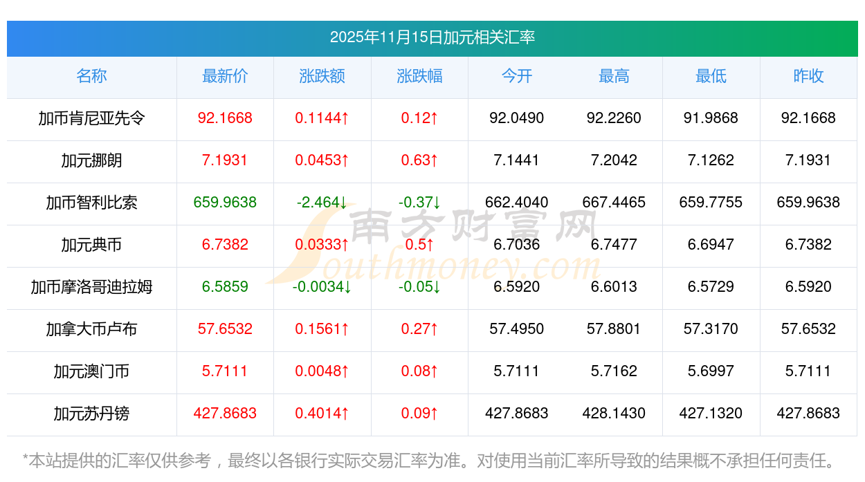 根據(jù)2025年11月15日匯率,加元兌換哥倫比亞比索匯率最新價(jià)2679.790000,今開價(jià)2674.5500,昨收價(jià)2679.7900,最高價(jià)2704.7500,最低價(jià)2666.8500。
