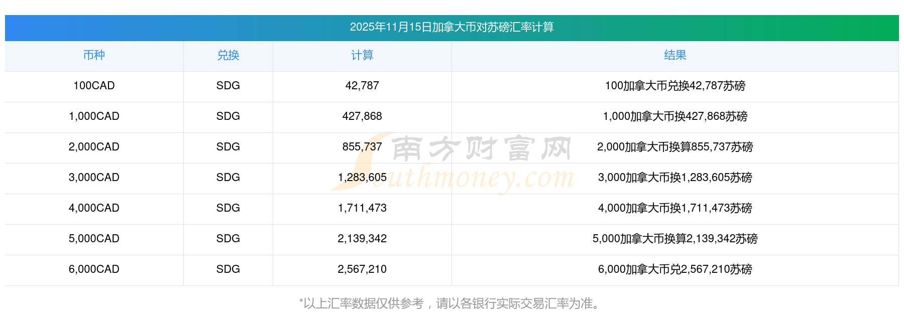 2025年11月15日匯率更新!今天84加拿大幣兌換蘇磅是多少?