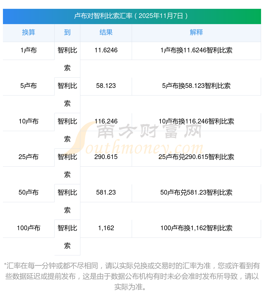新匯率調(diào)整 今天4盧布兌換智利比索匯率是多少? 2025/11/7