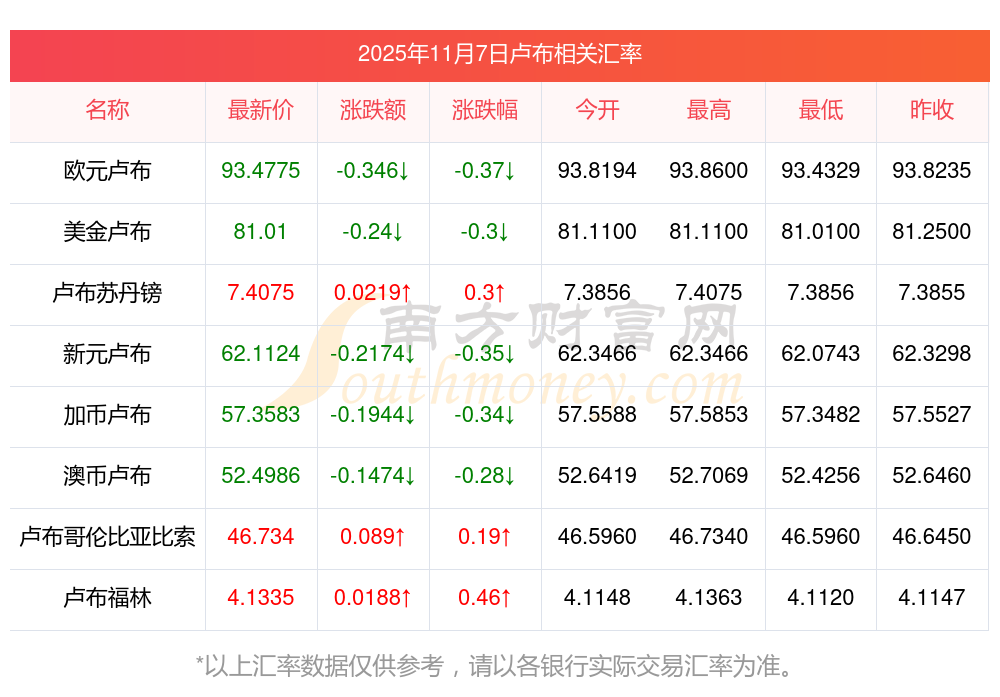 根據(jù)2025年11月7日匯率,盧布兌換阿根廷比索匯率最新17.908285,今開17.8862,昨收17.8554,最高17.9083,最低17.8862。